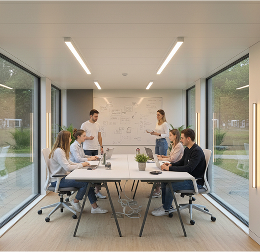 Jedną z zalet domu modułowego jako przestrzeni biurowej jest jego lokalizacja w centrum miasta. Umożliwia łatwy dostęp do spotkań biznesowych i konferencji, a jednocześnie zapewnia inspirujące otoczenie sprzyjające networkingowi i rozwojowi. Wiele takich miejsc oferuje też kawiarnie, siłownie czy przestrzenie wspólne.